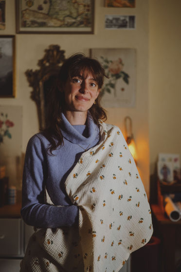 Je confectionne également des écharpes d’allaitement, conçues pour vous permettre d’allaiter en toute discrétion et avec confort, où que vous soyez.